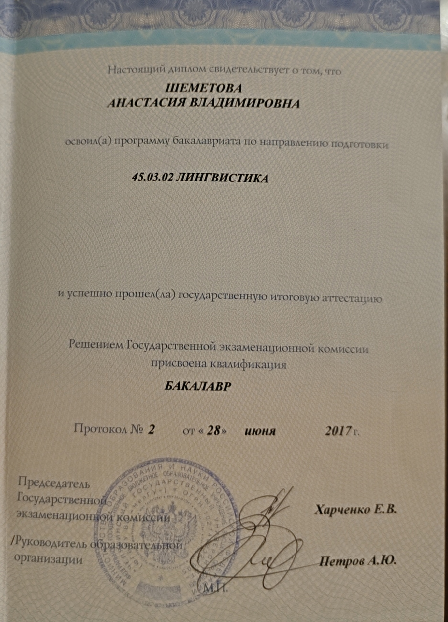 Лингвист-переводчик, педагог иностранных языков, работаю на результат, уже 10й год. Имею опыт подготовки к поступлению в НИШ, работала в международной школе развития интеллекта, готовлю от уровня Beginner до C1. Легко нахожу общий язык со студентами любых возрастов, качество и результат гарантирую при соответствующе серьезном подходе к занятиям со стороны обучающегося.