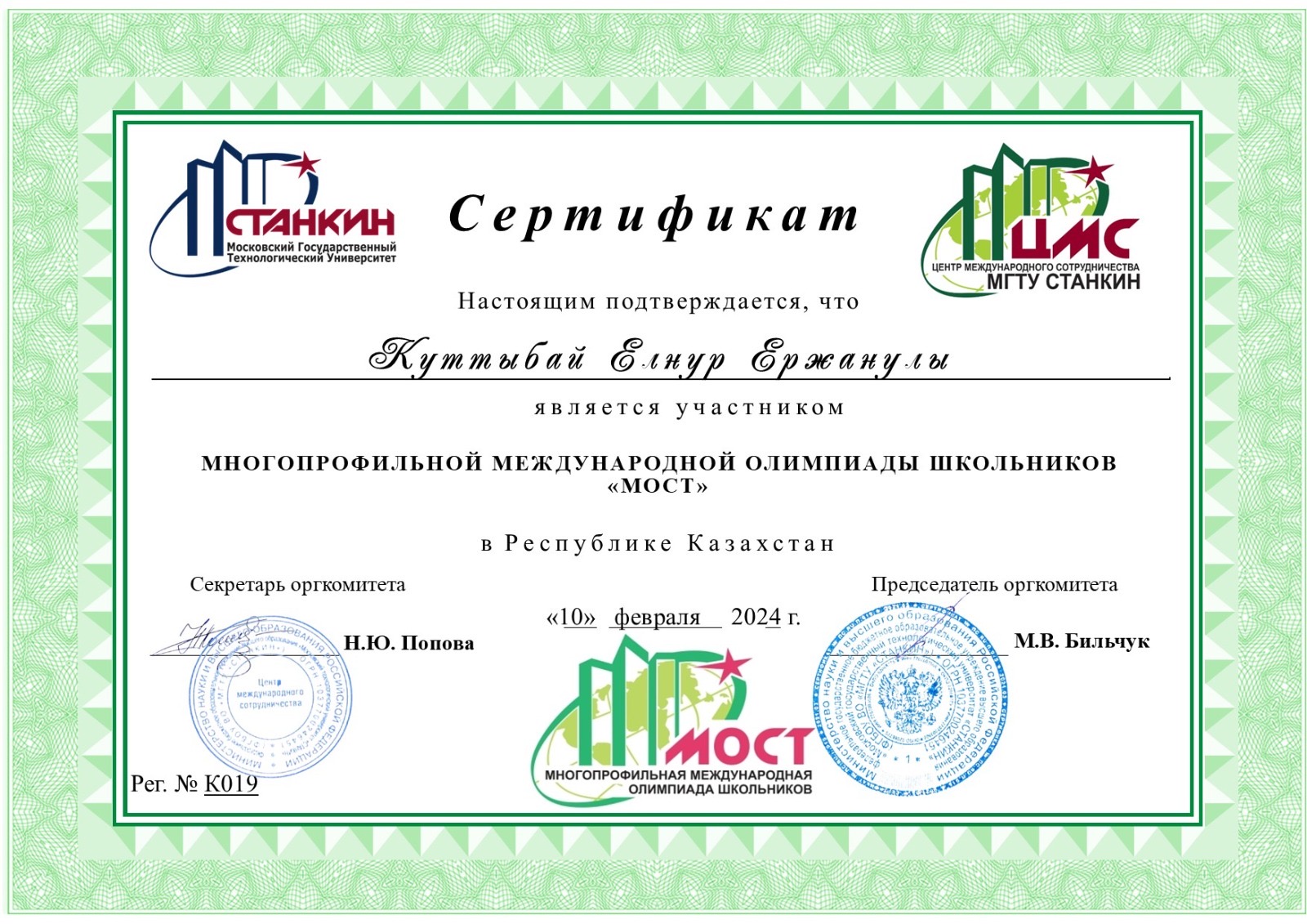 Я также проходил множество курсов из которых Eduway, sabaq online, Tesla, nimble academy, outpeer и курсы от региональных хабов Являюсь призером международной олимпиады МОСТ Начиная с 2023 подготавливаю людей по информатике к ЕНТ