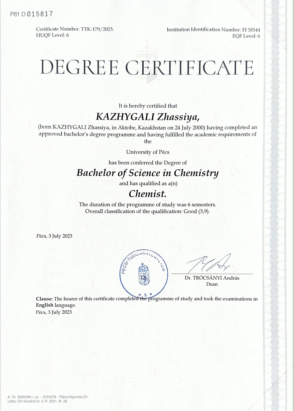 Закончила НИШ Астана, поступила на грант в Венгрию. На данный момент учусь на магистратуре в Турции. IELTS: 7.5