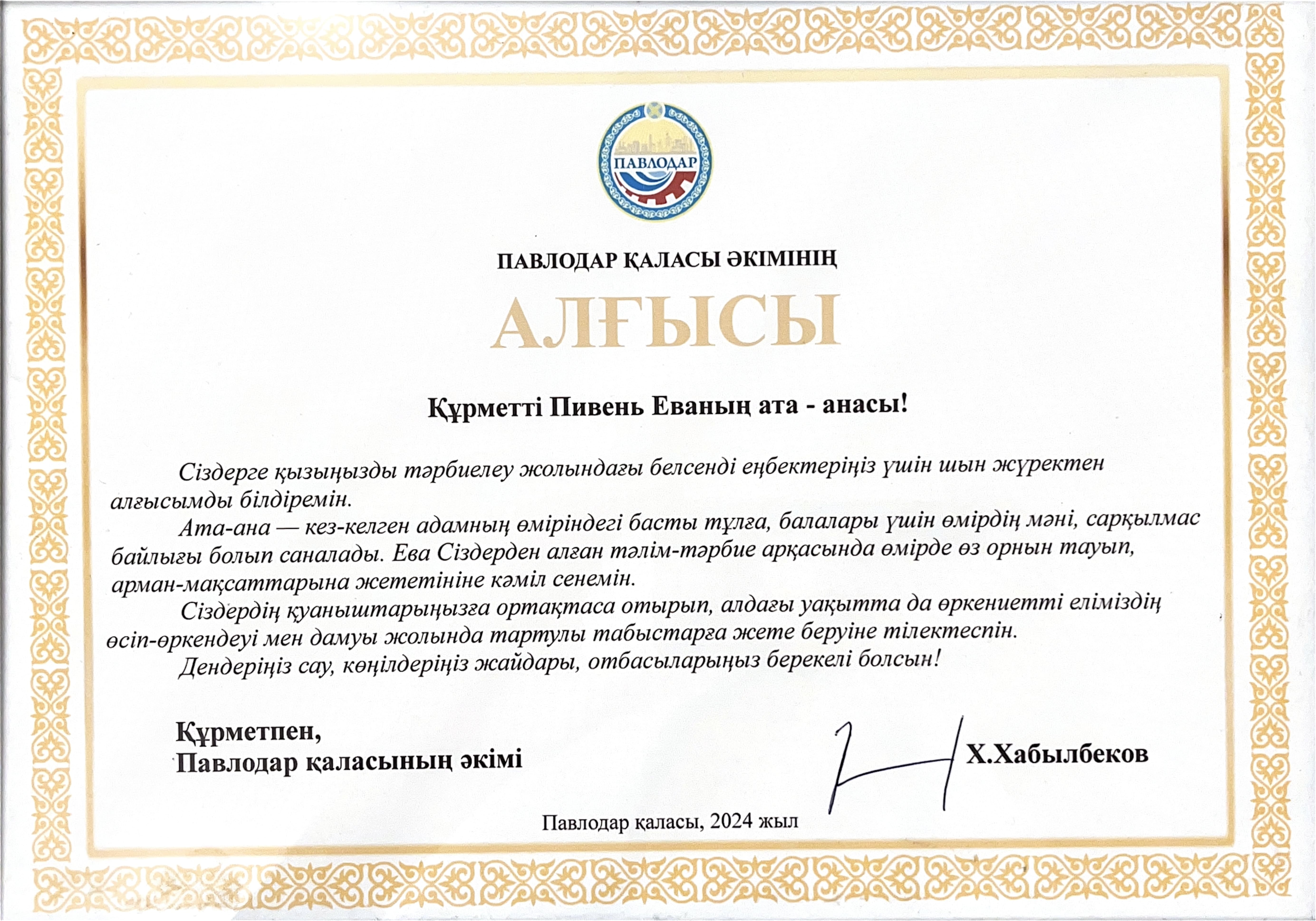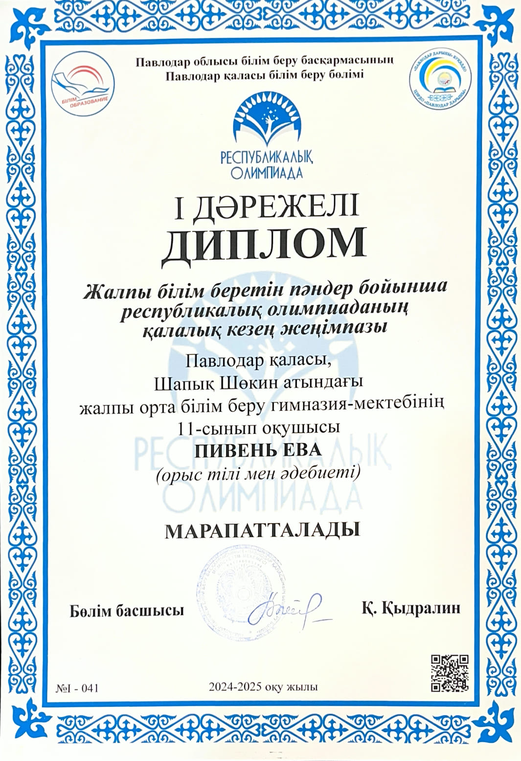 С седьмого класса я участвовала в олимпиадах по русскому языку и литературе и занималась этим вплоть до окончания школы. За это время стала победителем городских и призёром областных олимпиад, окончила школу с красным аттестатом и получила благодарственные письма и премии от Акима города и области. Сейчас я учусь на филологическом факультете и, по сути, иду по пути, о котором мечтала.