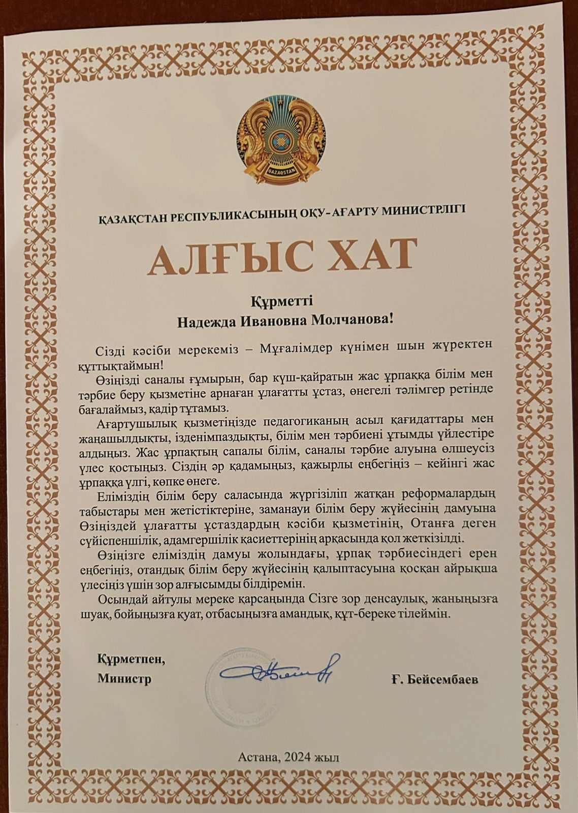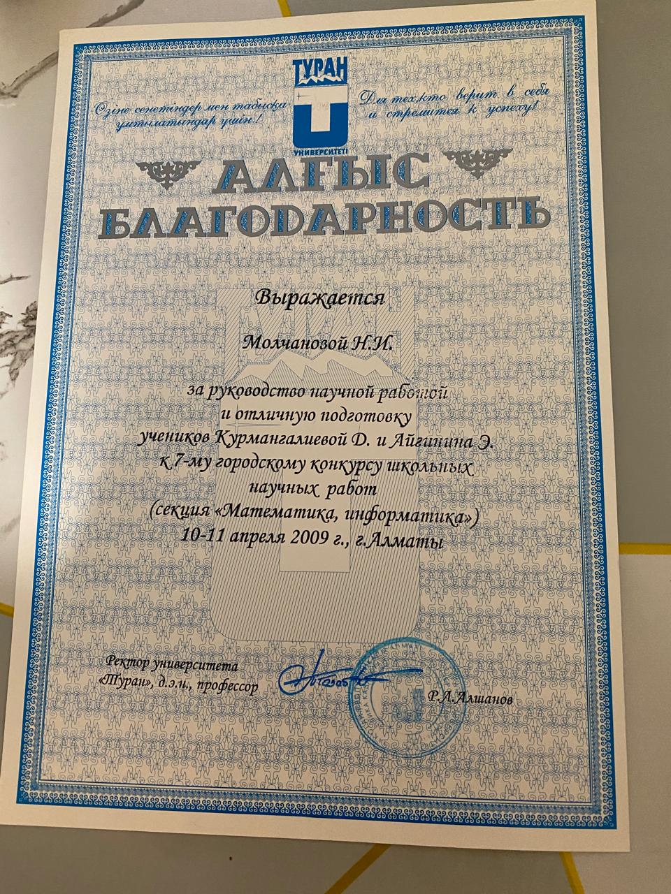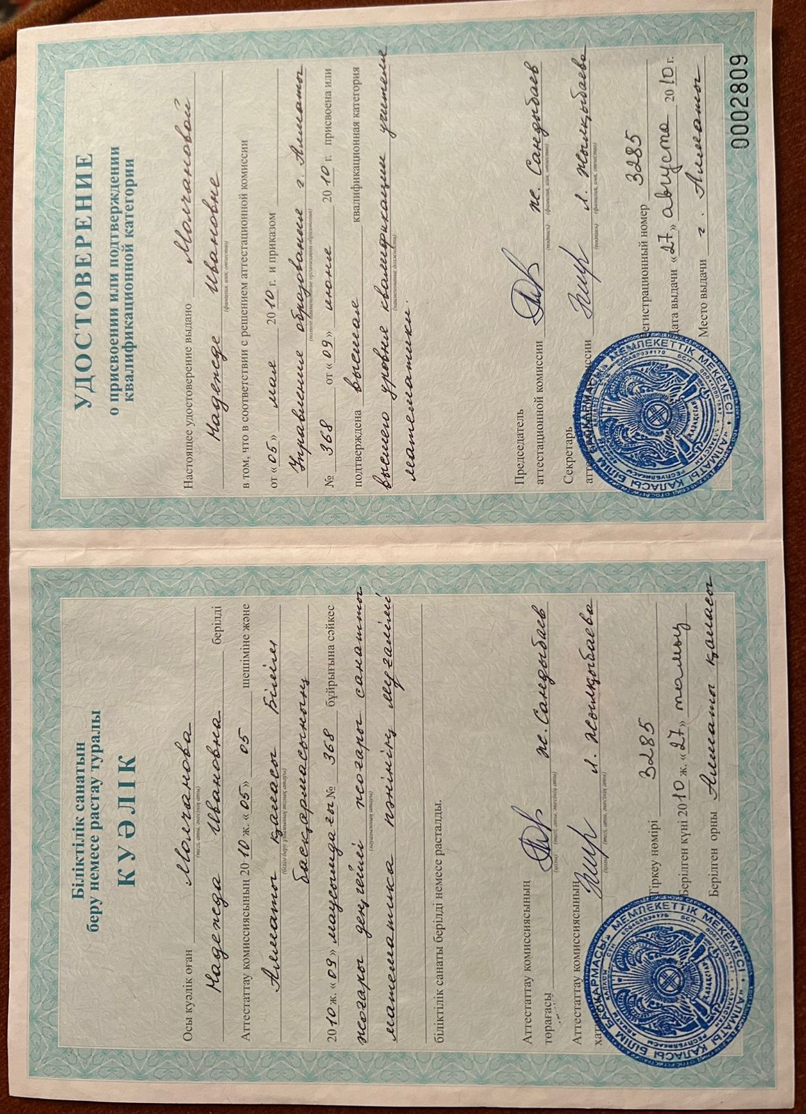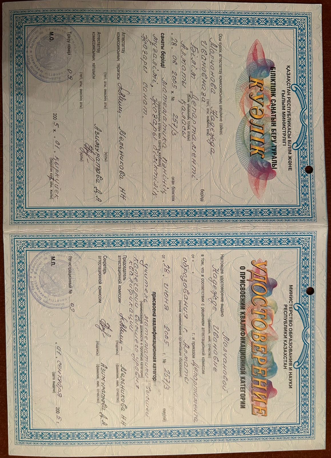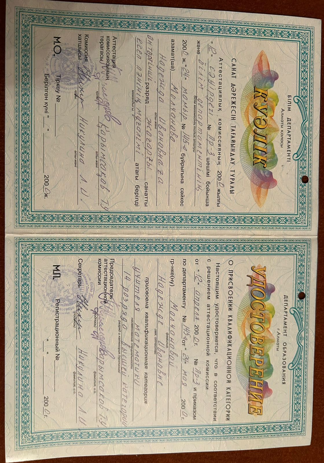 Учитель математики высшей категории, с 47 летним стажем преподавания, принимала участие в городских, республиканских конференциях.