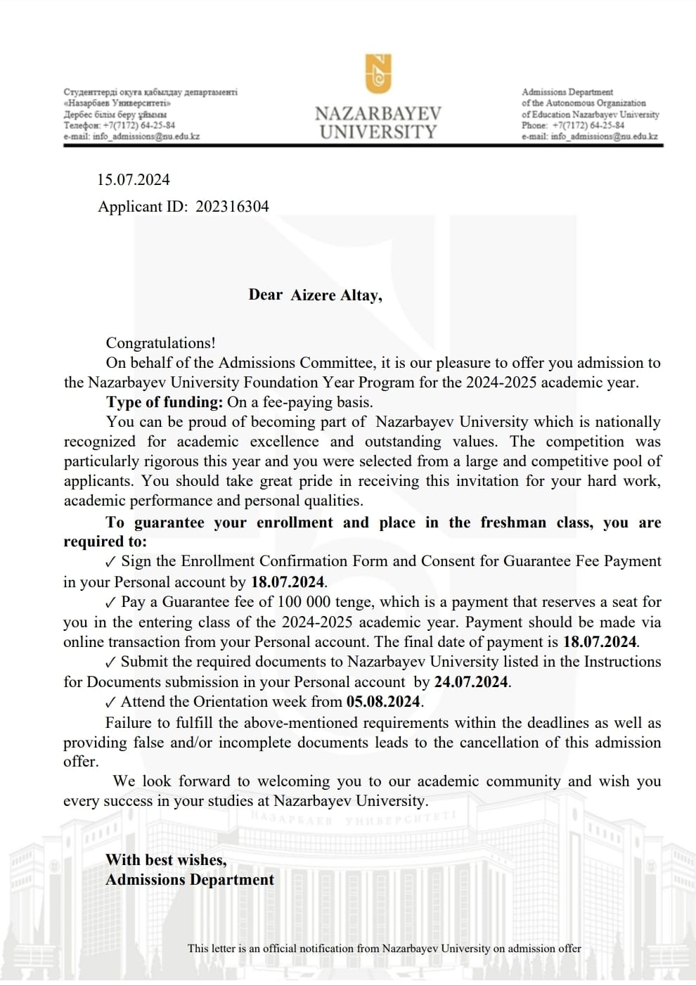 🎓 В школьные годы активно участвовала в научных и академических олимпиадах. Поступила без ЕНТ сразу в три престижных университета на полные гранты: