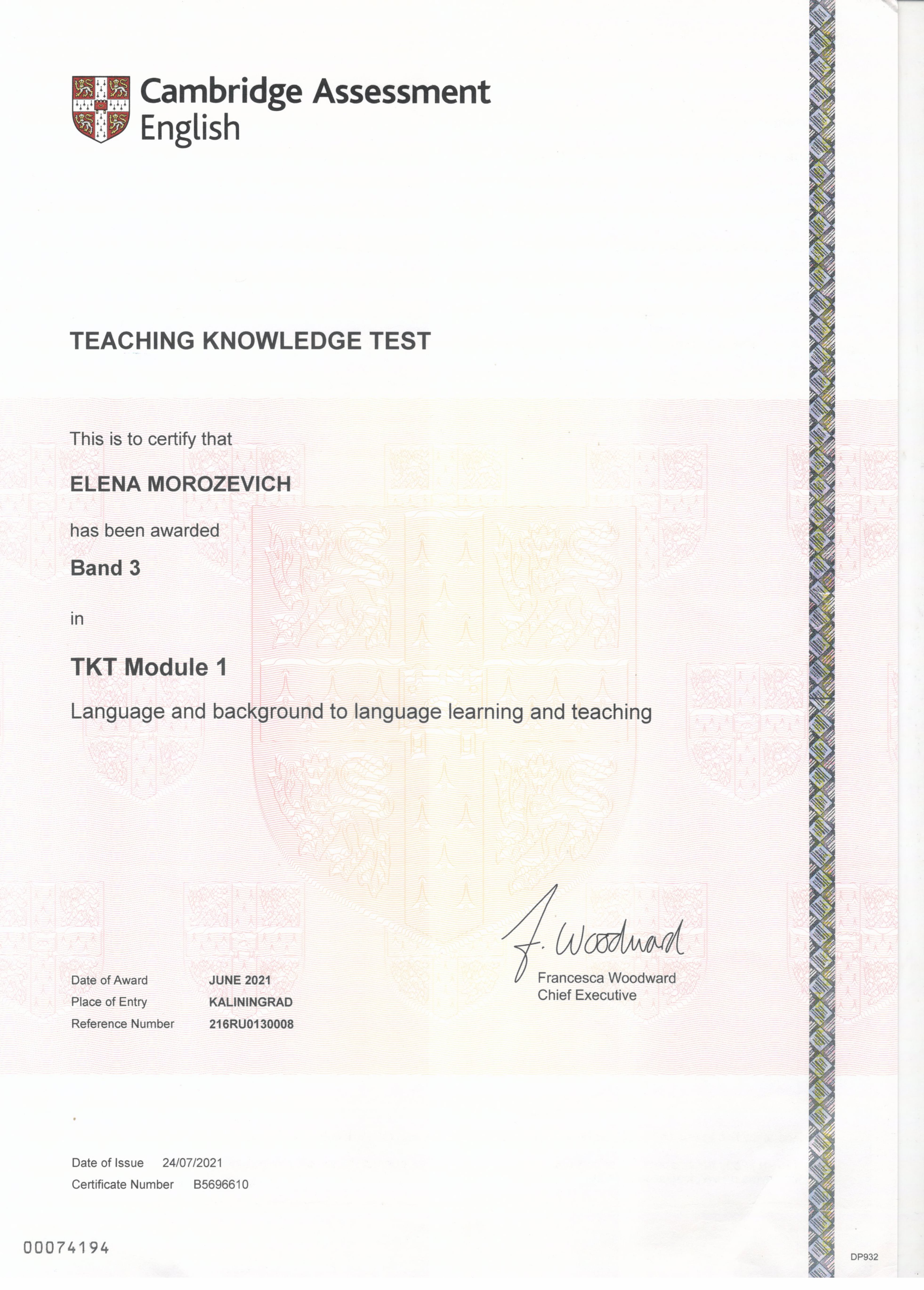 !!Идёт набор в мини группы!! Люблю свою работу. Подбираю индивидуальный подход к каждому ученику. После занятий со мной Вы/Ваш ребёнок почувствуете свободу в общении на английском! Есть опыт педагогических стажировок за границей (Израиль, Норвегия, Россия) Международные сертификаты SELT-S, TKT Подтвержденный уровень C1(IELTS Reading, LISTENING 8,5)