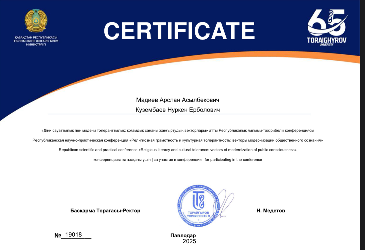 Автор научных статей. Опыт работы в образовательном. Тесты на все темы Истории Казахстана. Круглосуточная связь 24/7. Грант в педагогическом ВУЗе.