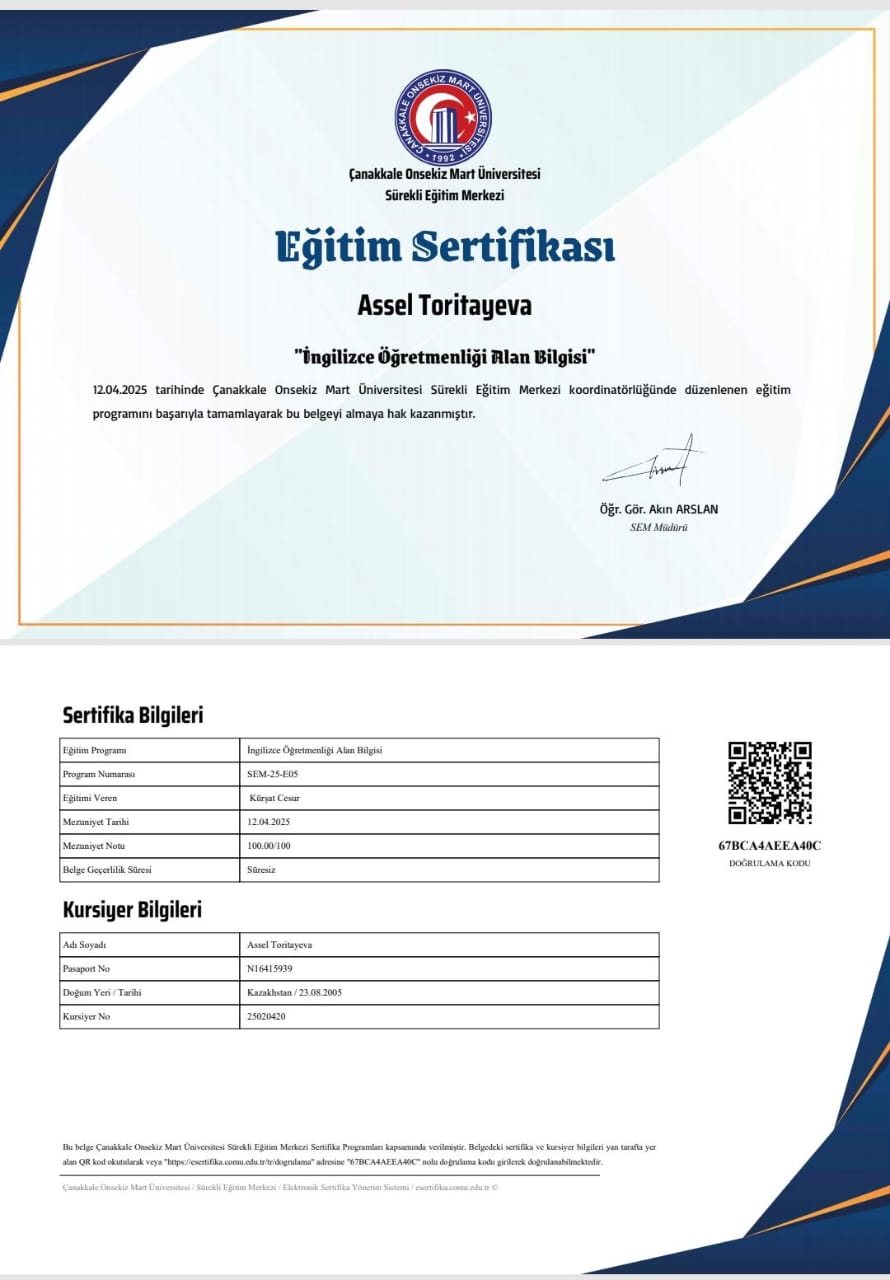 Меня зовут Асель. Я занимаюсь преподаванием английского и немецкого языков с нулевого уровня. Обучалась в Турции, где получила опыт учебной и языковой практики в международной среде. В своей работе объясняю материал простым языком, уделяю внимание уверенного устного общения. Составляю уроки индивидуально под цель, возраст и уровень ученика.