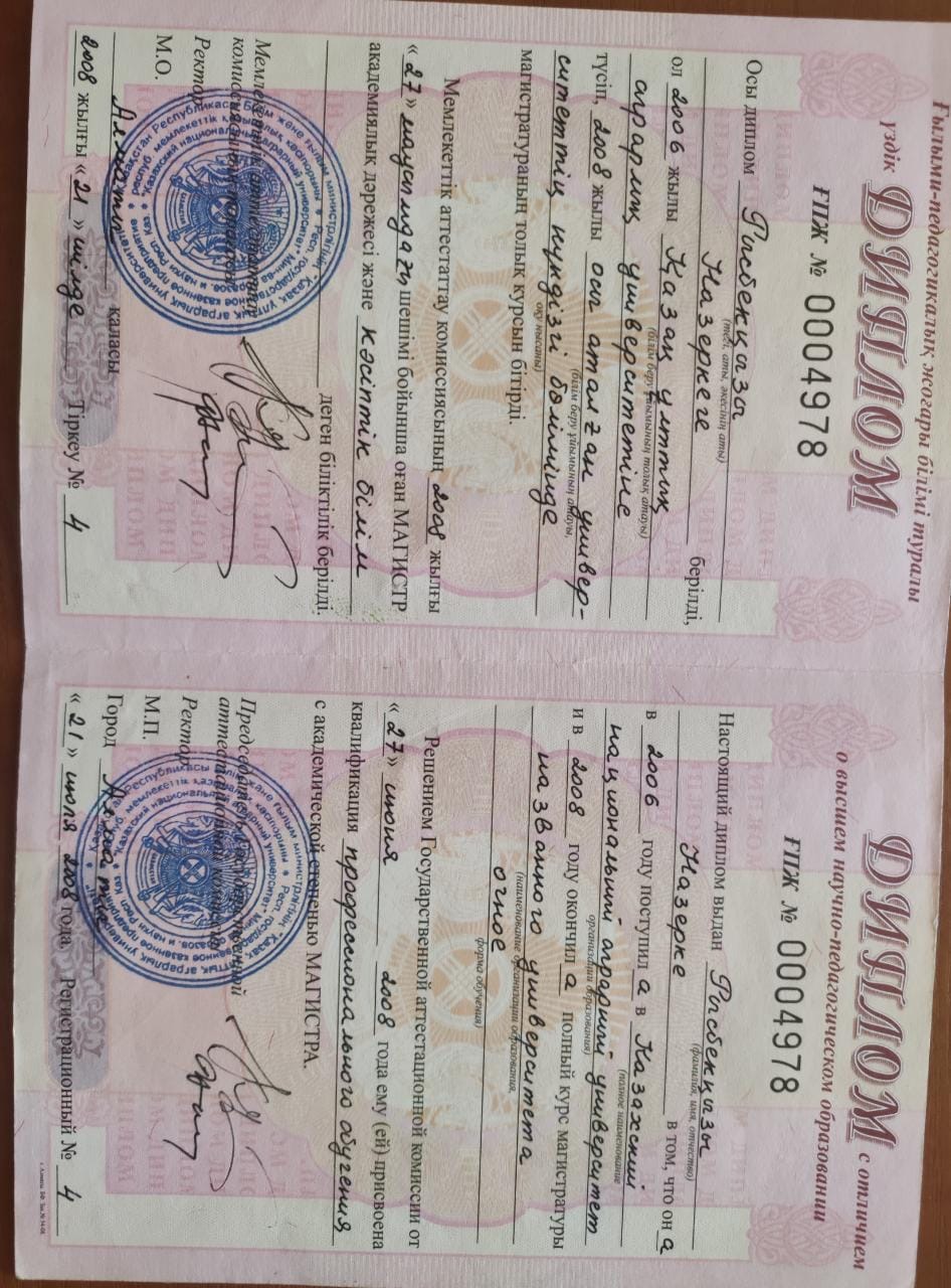 Я, Назерке, получила образование по специальности «Английский язык» в 2002 году в КазГУМО и МЯ и с тех пор работаю преподавателем. За годы профессиональной деятельности прошла курсы повышения квалификации, включая методику преподавания английского языка в Британском университете NILE, а также ряд других международных программ.