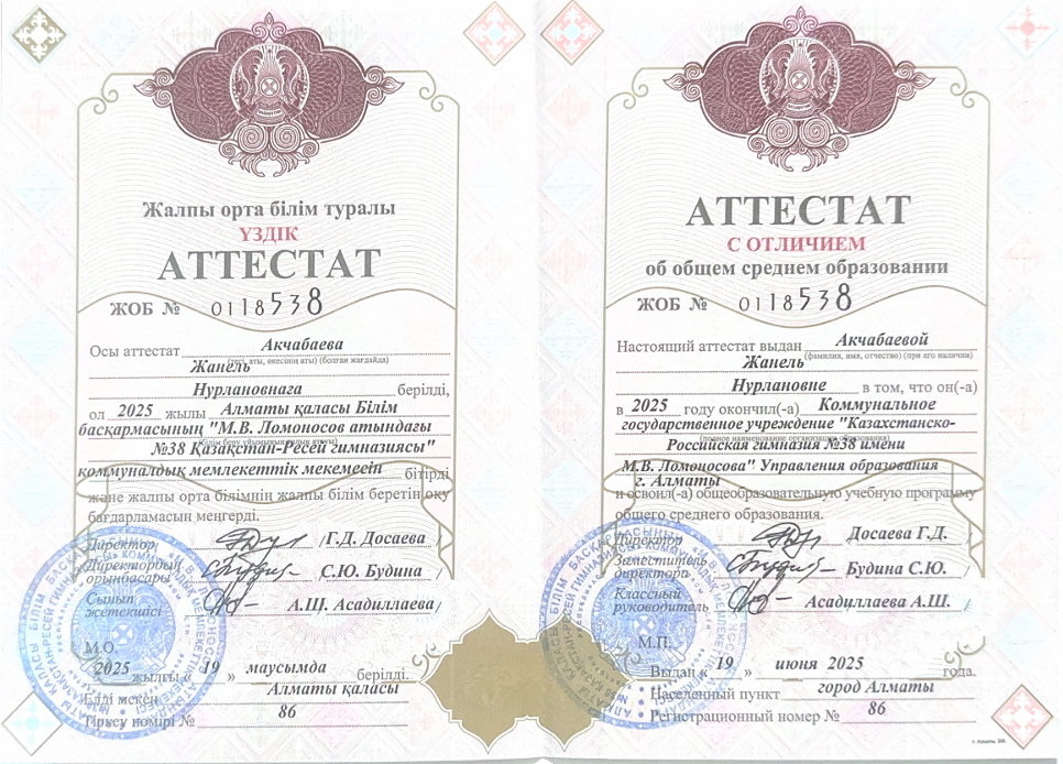 Здравствуйте, уважаемые родители и ученики! Меня зовут Жанель, мне 19 лет, я окончила Гимназию им. М.В. Ломоносова №38 г. Алматы с отличием, на сегодняшний день обучаюсь заграницей на полном гранте, изучаю высшую математику. Готова помочь детям подтянуть и укрепить знания, поскольку все еще хорошо помню и лажу со школьной программой.