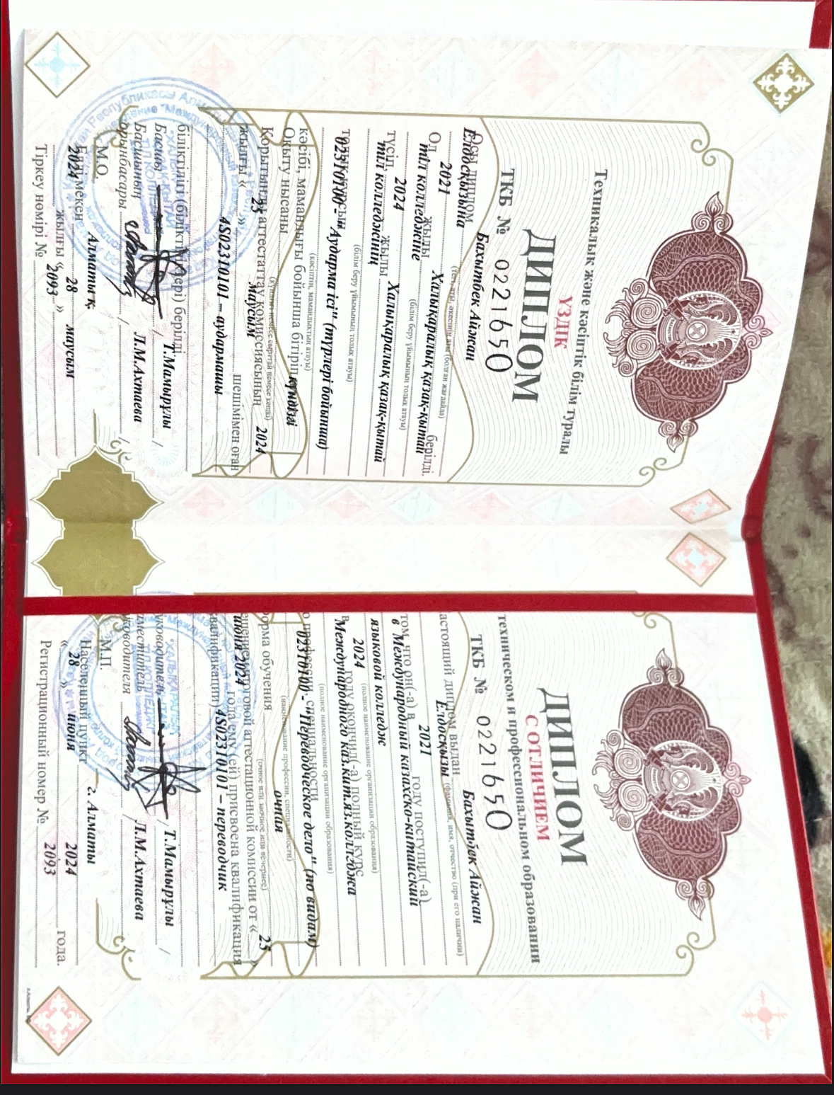 Закончила в Алматы,Международный казахско-китайский колледж на красный диплом переводчика. Ныне нахожусь в Китае, город Сиань. Учусь на бакалвриате.