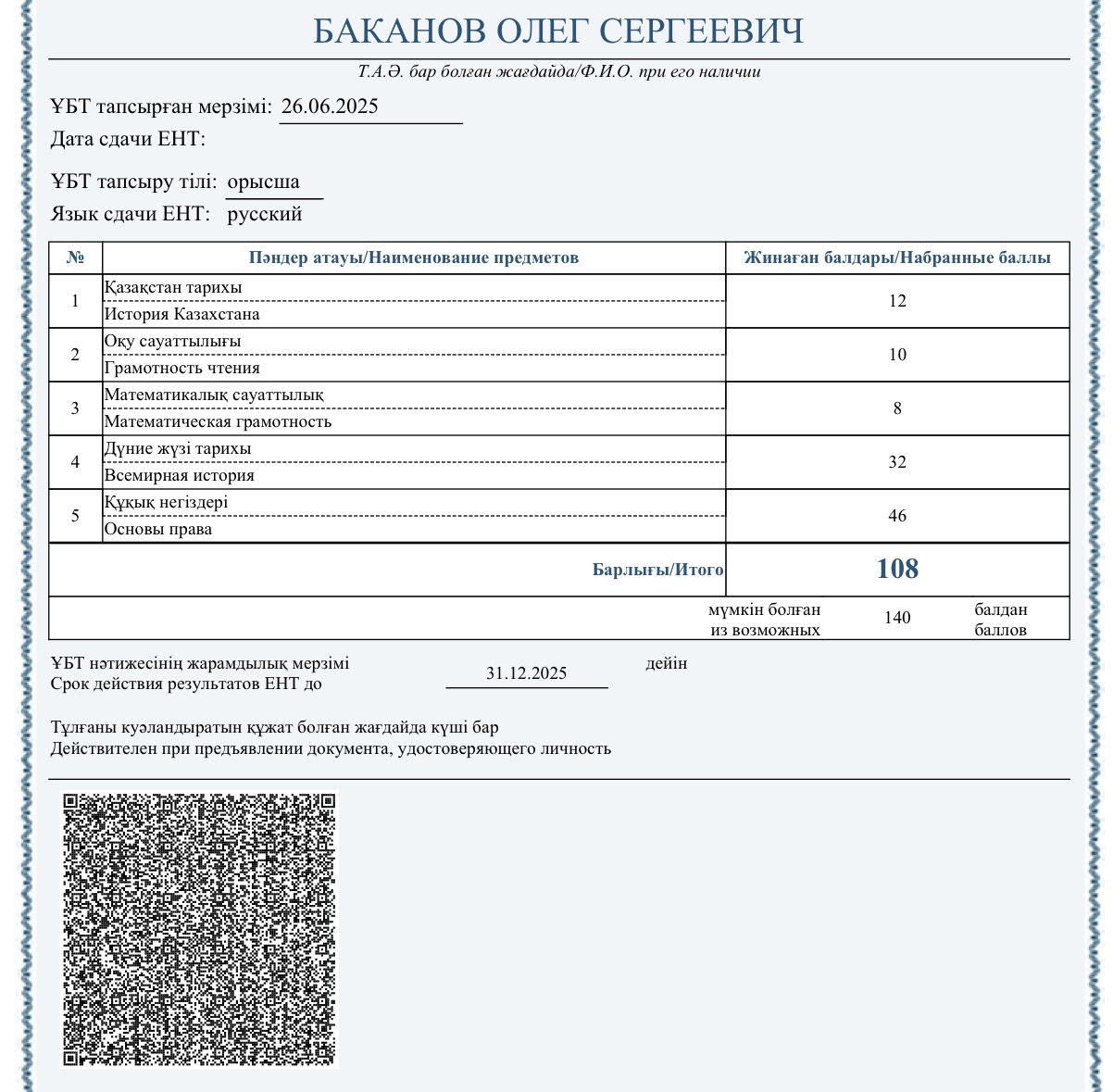 - учусь на ректорском гранте на юрфаке в AlmaU;