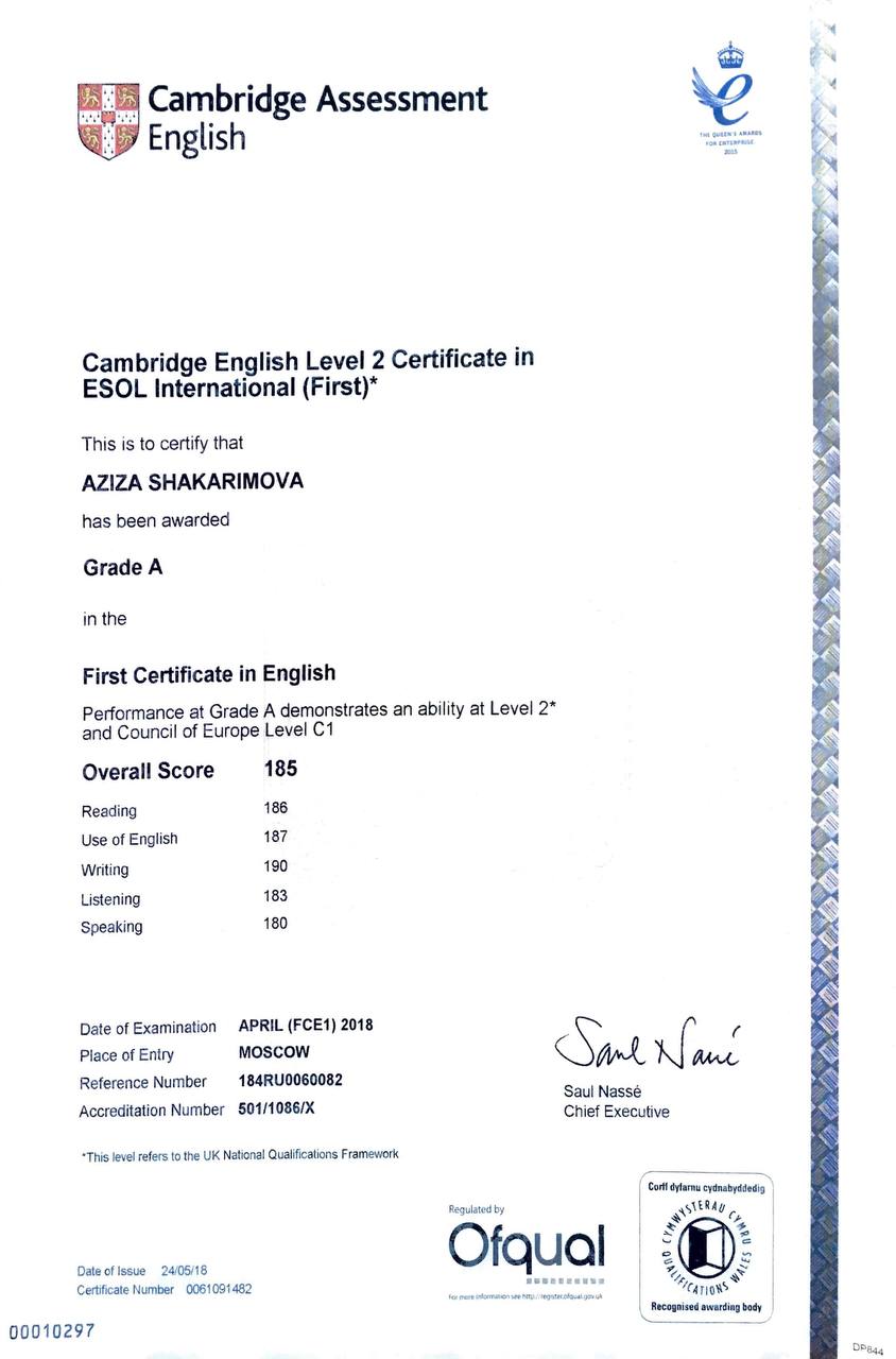 Меня зовут Азиза, и я потомственная филологическая дева уже в третьем поколении. Я окончила историко-филологический факультет Российской президентской академии со специализацией в "Искусствах и гуманитарных науках" и профилем в "Классической филологии и переводе". Сейчас я прохожу повышение квалификации по методике преподавания языков в МПГУ