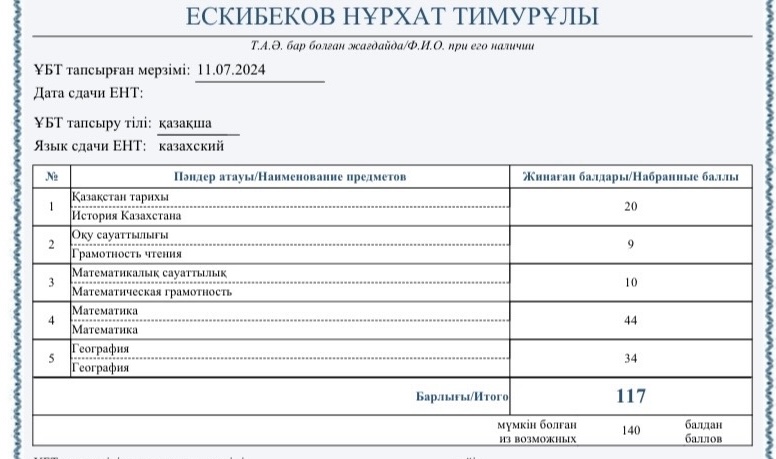 В ЕНТ набрал 44/50балов по математике