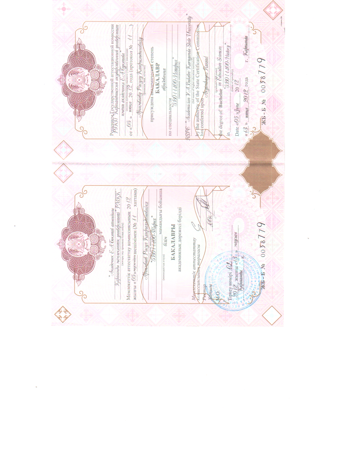 Человек я зрелого возраста, обладающий жизненным и профессиональным опытом. Отличается ответственностью, дисциплиной и стремлением к развитию. В своей деятельности ориентируется на результат, умеет работать с людьми и принимать взвешенные решения. Родился в селе Жараспай Карагандинской области. Работаю и живу в Караганде.