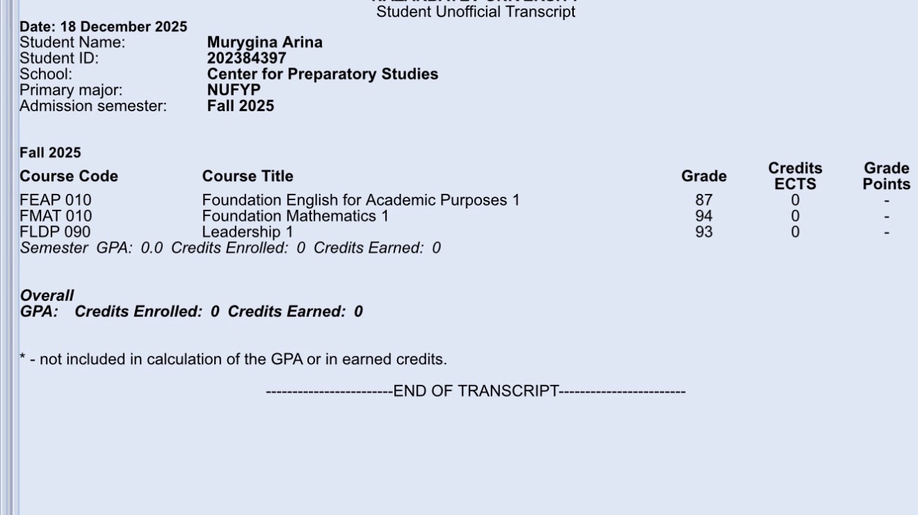 Я преподаю английский язык и математику, репетитор с 2-летним стажем. Закончила Foundation Nazarbayev University c 95+ показателями.