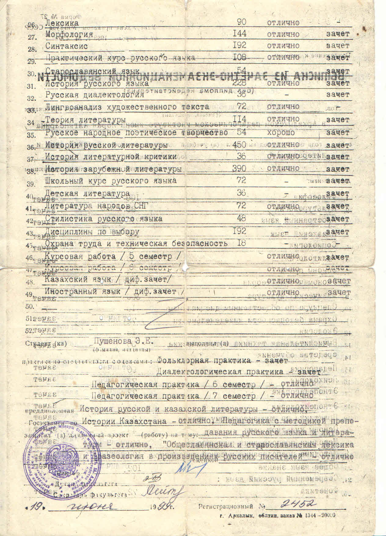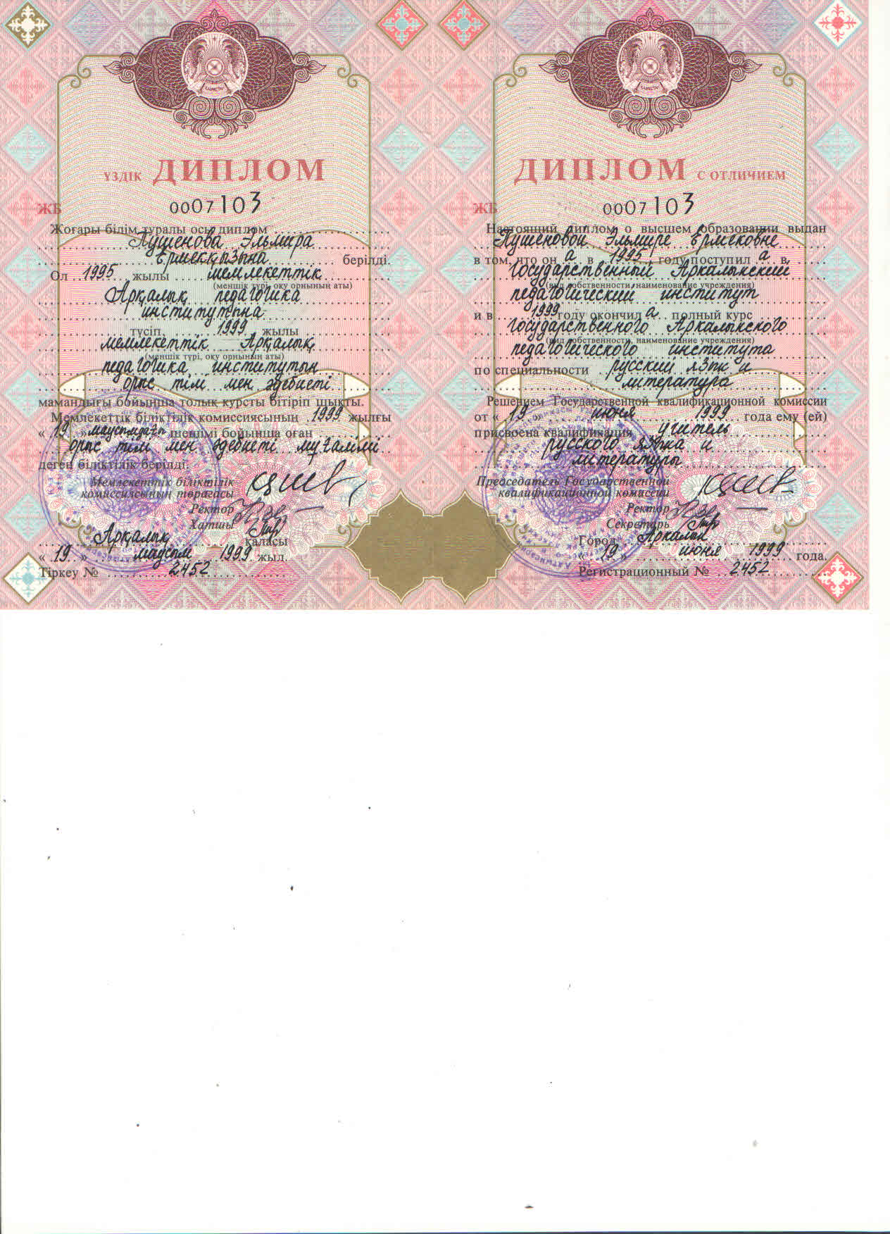 Курсы повышения квалификации по обновленному содержанию образования, уровневые курсы по Кембриджской программе 3 уровень, международные семинары, конференции, победитель международных конкурсов: Пушкинский конкурс, Всемирный фестиваль русского языка, "Хрустальная чернильница", конкурс педмастерства, конкурс эссе. Победитель ежегодного Московского фестиваля русского языка, педагогических олимпиад центра "Дарын".