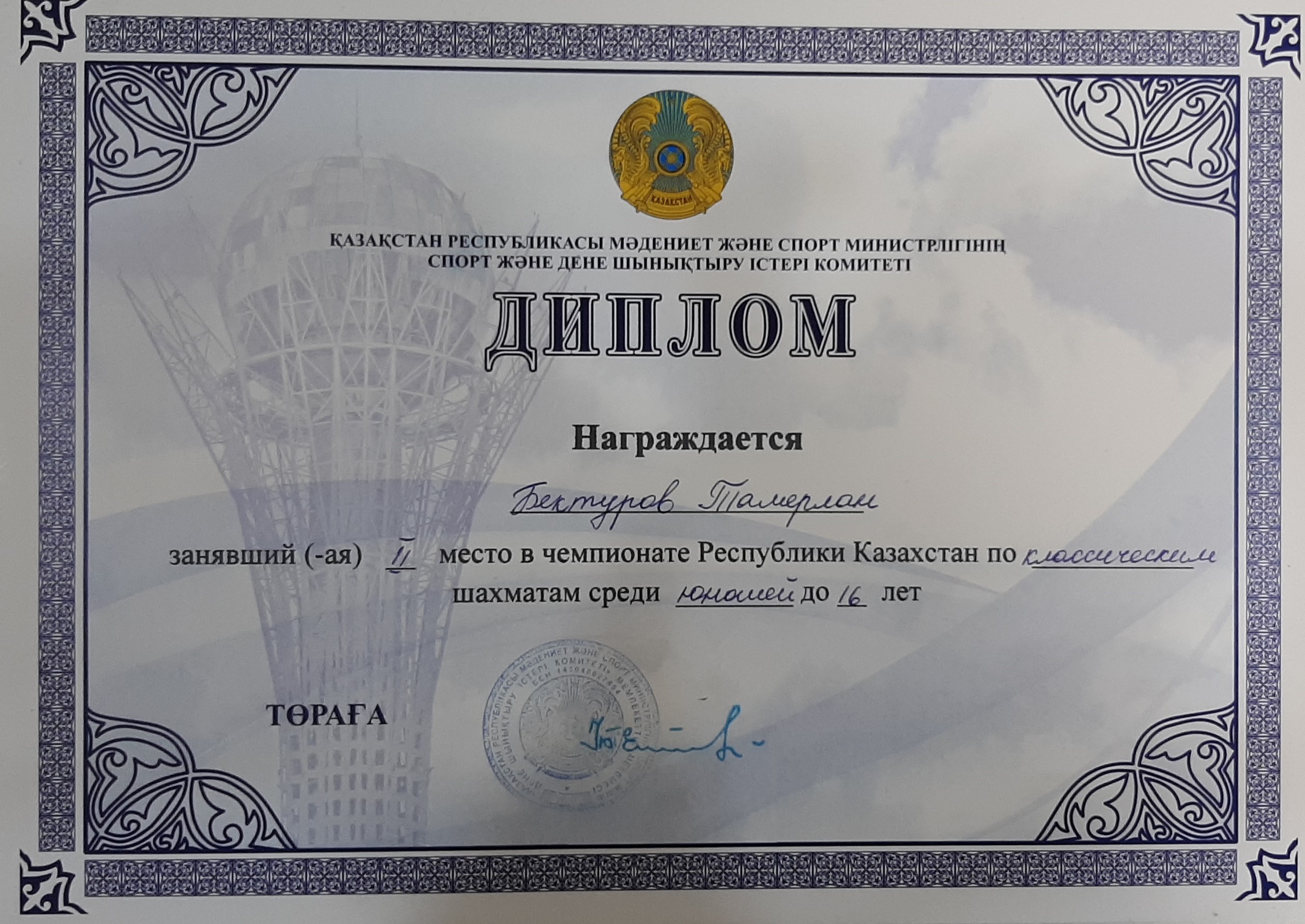 Преподаю шахматы более 3-х лет, на данный момент работаю в шахматном клубе (дистанционно). Прошел через множество профессиональных тренеров РК, по этой причине имею огромный багаж знаний в сфере преподавания и также нахожу к каждому ученику индивидуальный подход. Перед работой с учеником определяю, что необходимо сделать мне как тренеру, ставлю сроки и начинаем работать.Мои ученики любят шахматы и становятся профессионалами.