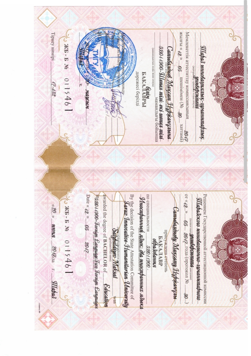 Максат Сатыбалдиев 5.0(отзывов: 1)